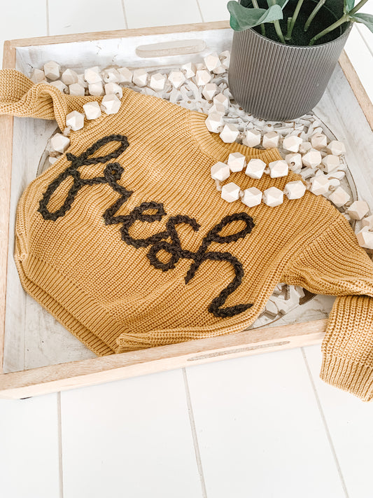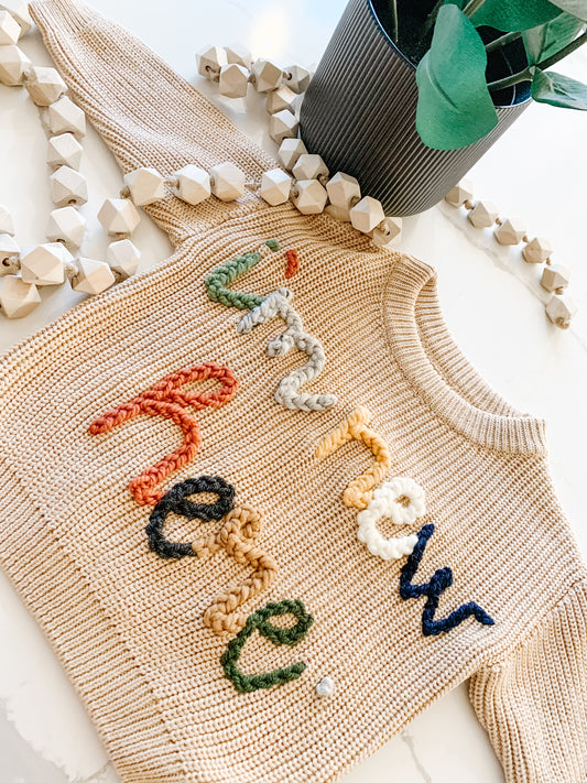 These knits have already been embroidered with the sweetest, most popular designs. With an easy click you can add an ALREADY MADE sweater to your cart "as-is" or email contact@sweetstitches.ca if there is something you would like to add before purchasing.