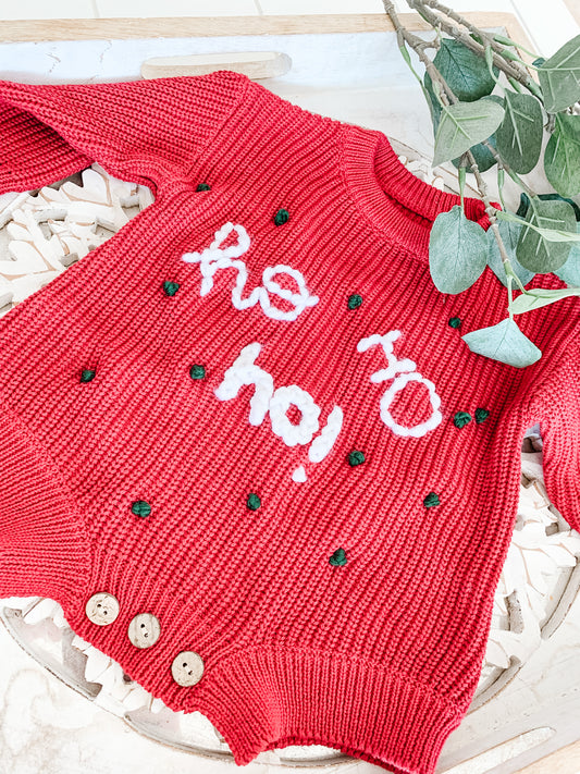 Sold outHo Ho Ho on Berry Red Romper