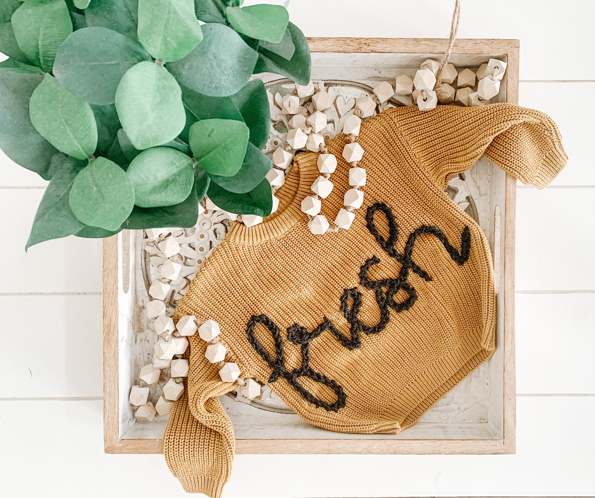 - Each sweet knit sweater is designed by you and hand embroidered so no two sweaters are alike. This also means that there are no refunds/exchanges, however, please reach out if there is an issue.