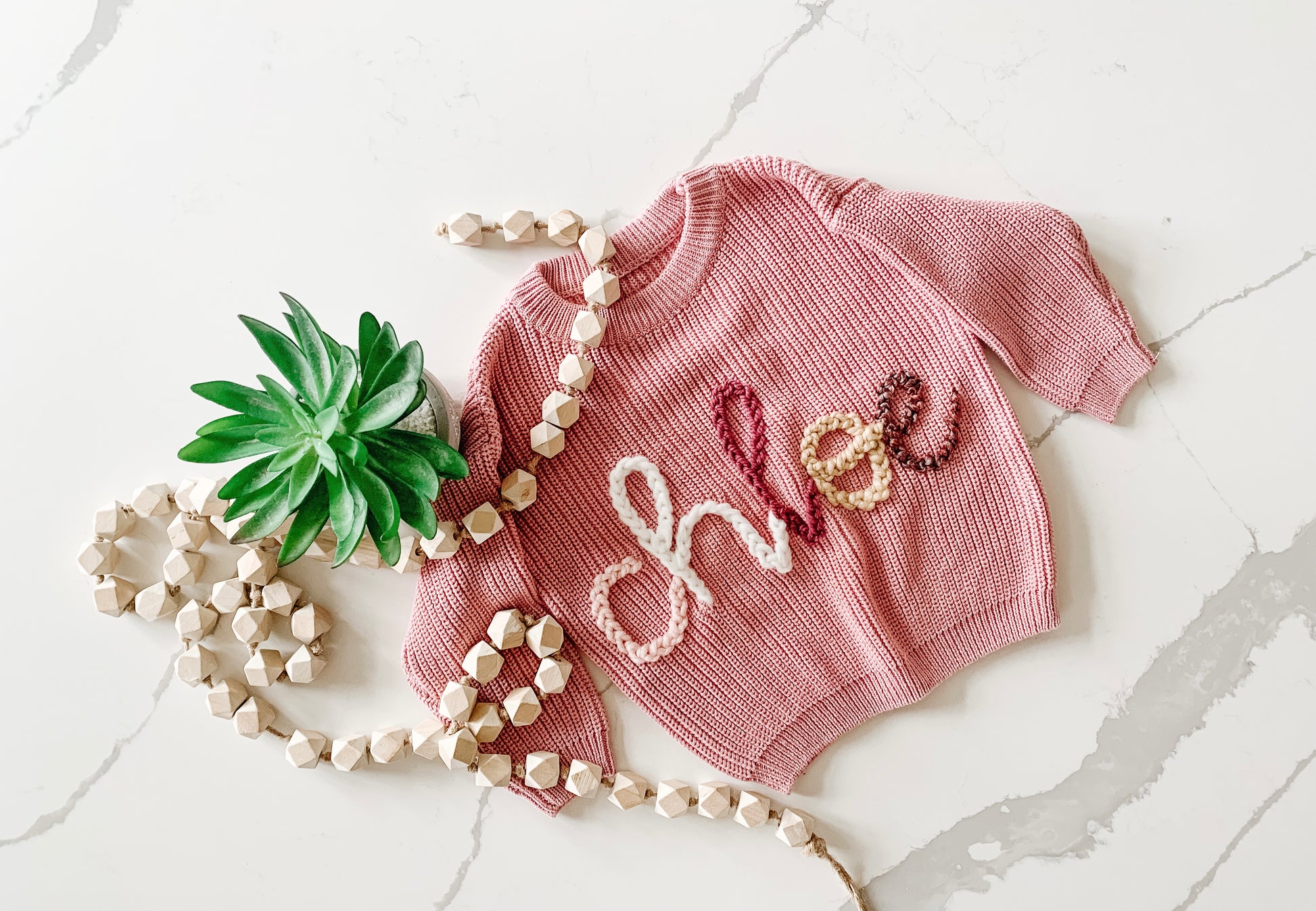 - Each sweet knit sweater is designed by you and hand embroidered so no two sweaters are alike. This also means that there are no refunds/exchanges, however, please reach out if there is an issue.