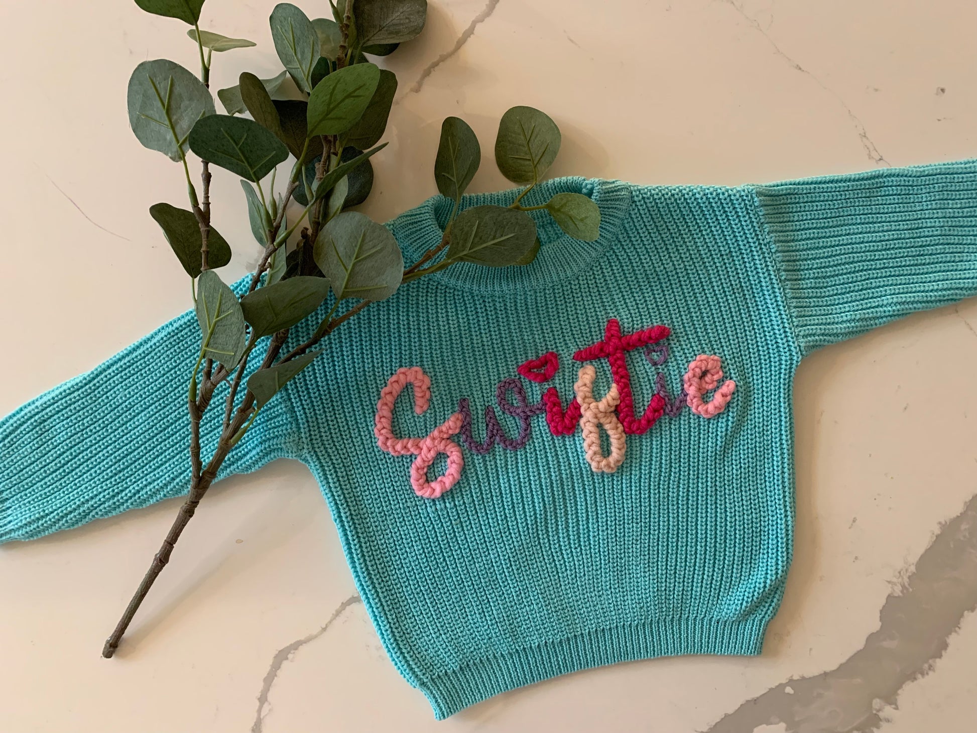 These knits have already been embroidered with the sweetest, most popular designs. With an easy click you can add an ALREADY MADE sweater to your cart "as-is" or email contact@sweetstitches.ca if there is something you would like to add before purchasing.